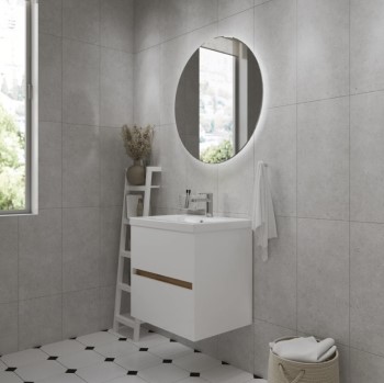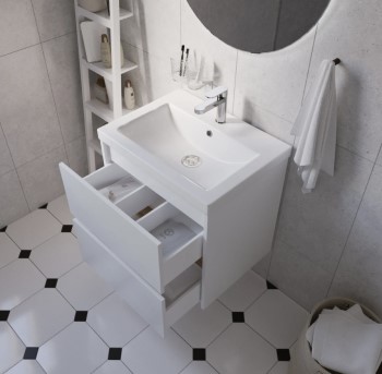 • Тумба 1MARKA Veil 50П (подвесная,белая аляска/дуб вотан, умывальник сomo 50)